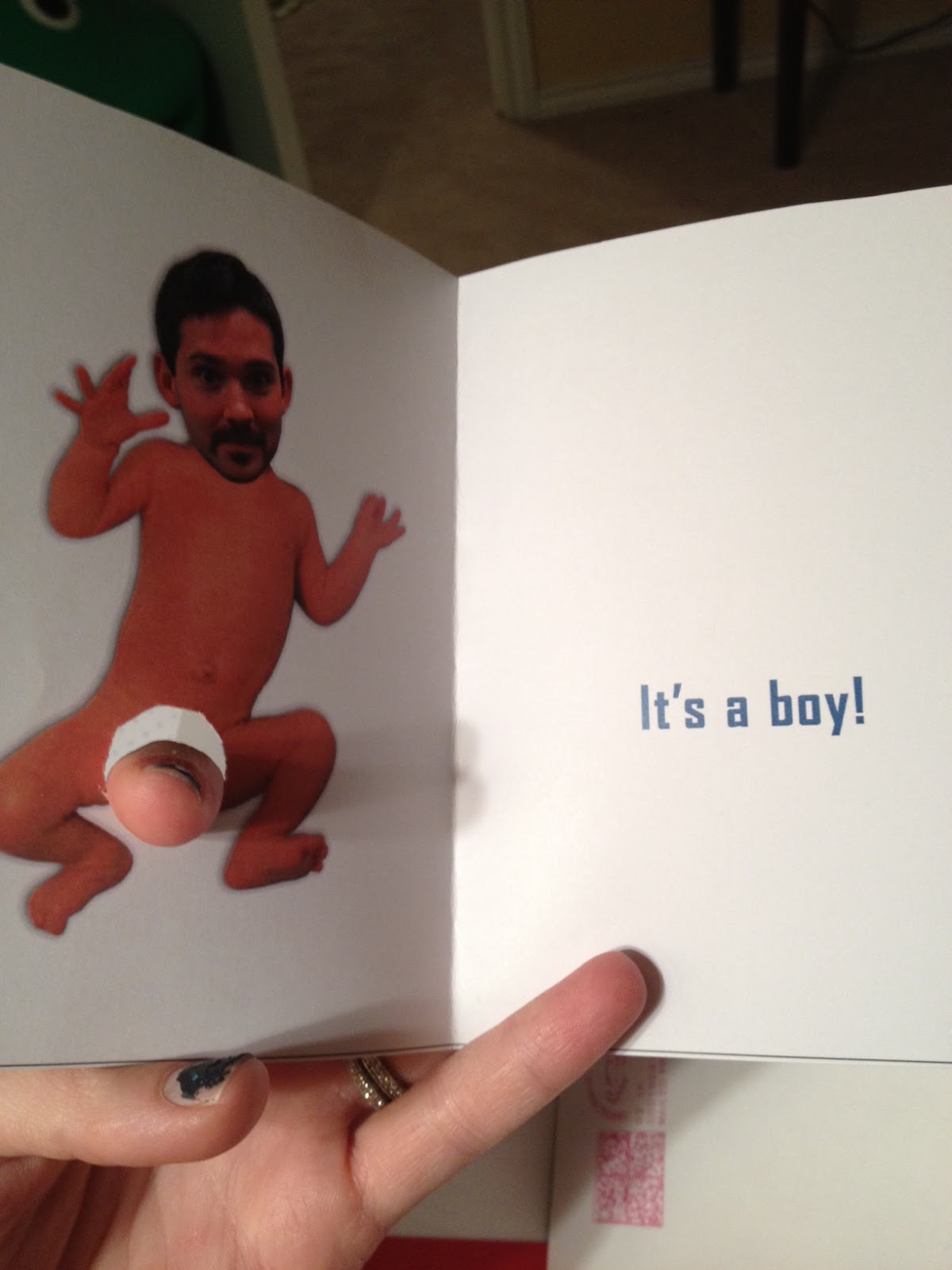 a year ago today, we found out our golden nugget was a boy!!! when matt received the news his testosterone kicked in to overdrive, he had his friend make this card to announce the big news to our friends and family.